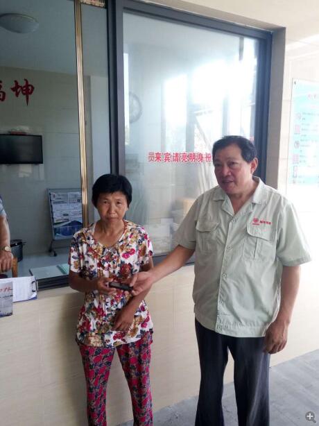 圖為封先生愛人在福坤玻璃廠門口從吉國達手中接過手機。