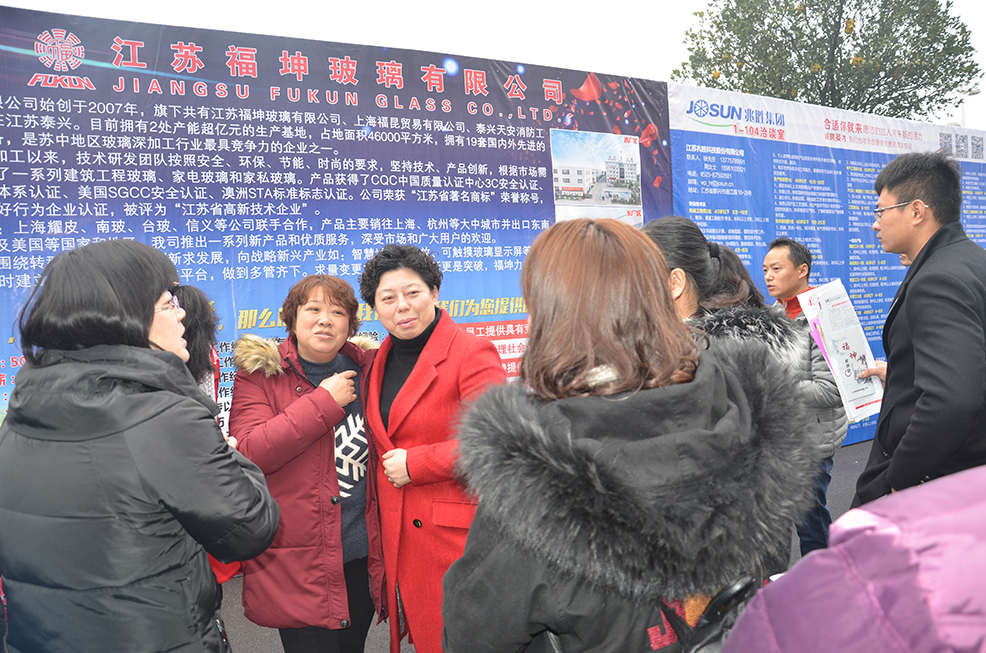 2月6日,公司精心組織行政部、銷售部、生產(chǎn)部等部門骨干力量10余人參加“2017年泰興市新春大型招聘會”。在會場巨型招聘海報前,負責(zé)招聘的同事為來來往往的求職者分發(fā)福坤宣傳手冊,宣講人員耐心、細致對求職者介紹企業(yè)情況,從而吸引了大量的求職者前往我司招聘攤位填寫或投遞簡歷。