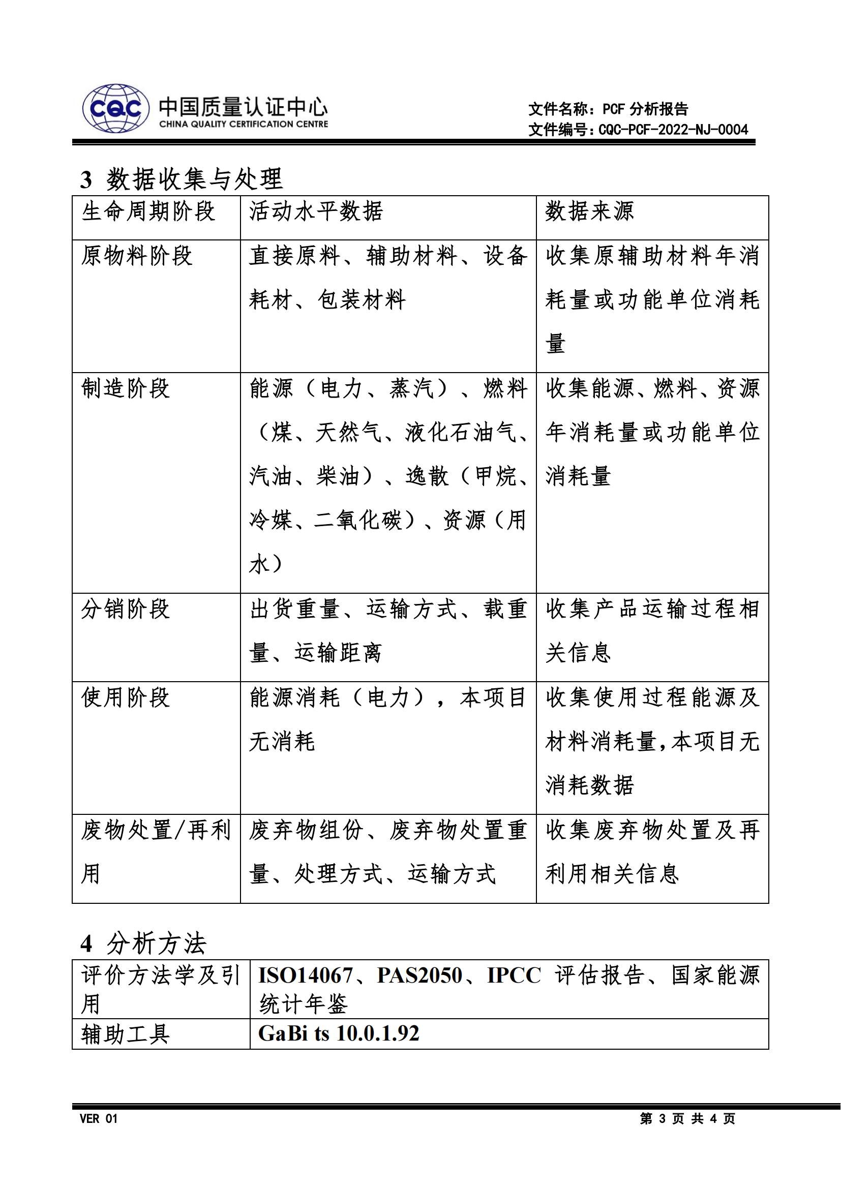 產品碳足跡分析報告及溫室氣體核查陳述報告-公示